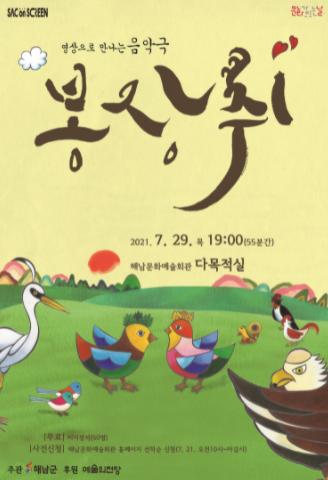 [한국연예축제일보, 전용훈기자] 해남군은 7월‘문화가 있는 날’주간을 맞아 예술의전당이 제공하는 어린이 음악극‘봉장취’를 스크린을 통해 상영한다.