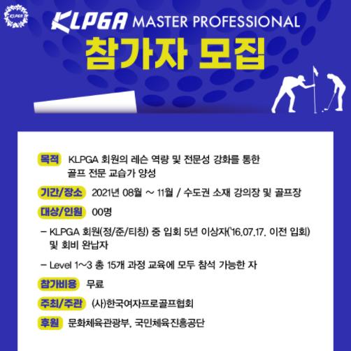 골프 인구가 나날이 증가함에 따라 골프 레슨 시장이 확대되고 있는 가운데, KLPGA는 투어에 참가하는 회원을 제외한 많은 회원들이 레슨 활동을 하고 있다는 사전 조사를 통해 KLPGA 회원만을 위한 자격과정의 필요성을 인식했다. 이에 KLPGA는 ‘KLPGA Master Professional’을 신설하고 운영한다.