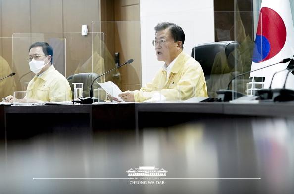 문 대통령이 중앙부처와 17개 시도가 영상으로 참석하는 중앙재난안전대책본부 회의를 주재한 것은 오늘이 두 번째로, 작년 12월 13일에 이어 7개월 만이다. 수도권에서 전국으로 확산되는 코로나19 상황을 엄중히 보고, 중앙정부와 지방정부가 합심하여 신속하고 강력하게 대응함으로써 민생을 지키겠다는 비상한 각오에서 이루어진 것이다.