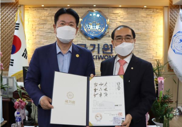 국기원(원장 이동섭)이 태영호 국회의원(서울 강남구갑)에게 명예단증을 수여했다.