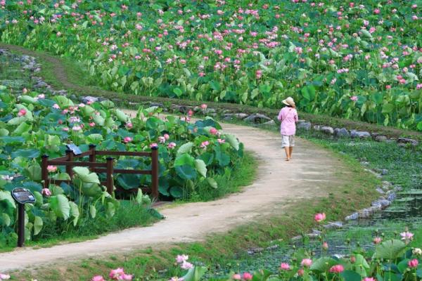 [한국연예축제일보, 이청기자] 무더위에도 꼿꼿한 자태로 화려함을 뽐내는 여름 꽃, 연꽃. 진흙에서 고운 꽃을 피워내는 덕에 군자화로 불린다. 종교적 의미까지 더해져 마음수련을 상징하는 꽃으로도 여겨진다. 코로나19와 더위에 불쾌지수가 치솟는 요즘, 일상탈출 야외 여행지로 함안연꽃테마파크를 추천한다. 접근성도 좋다. 함안IC를 넘어서면 5분 거리에 있다.
