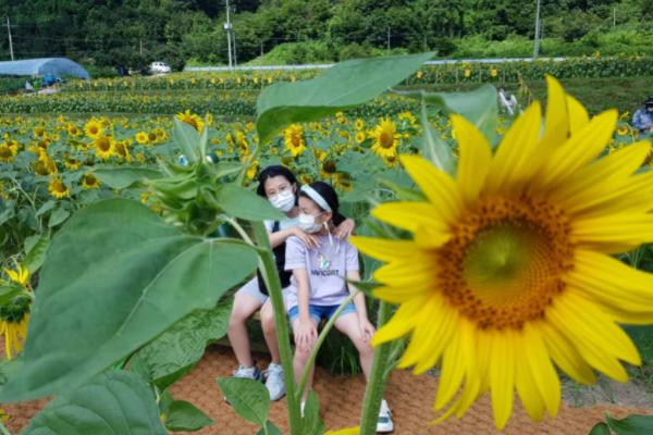경관단지 해바라기꽃 관람은 캐릭터 조형물들과 함께하는 포토존도 마련되어 있으며, 오는 8월 22일까지 관람이 가능하다.