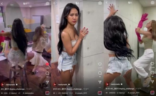 나다는 지난 2일 자신의 인스타그램에 ‘#신_챌린지’, ‘#spicy_challenge’, ‘#트월킹챌린지’라는 태그와 함께 달수빈, 조가빈과 각각 촬영한 챌린지 영상을 게재했다.