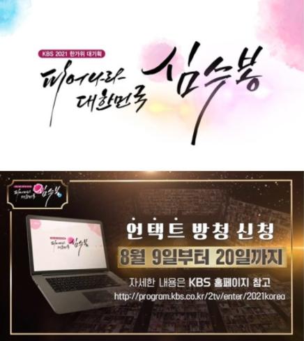 한편 KBS ‘2021 한가위 대기획 '피어나라 대한민국' 심수봉’은 26년만에 KBS에서 갖는 첫 TV 단독쇼인만큼 심수봉이 KBS 제작진과 의기투합, 가슴을 울리는 따스한 목소리로 코로나와 무더위에 지친 전 국민에게 태극전사의 감동을 잇는 금빛 미소를 선사하기 위해 준비중이다.