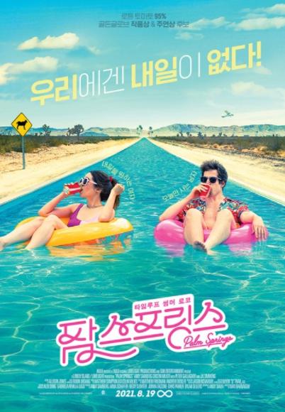 '팜 스프링스'는 결혼식만 100만 번째? 눈 뜨면 항상 똑같은 하루가 시작되는 타임루프 세계관에 갇힌 남녀의 오늘만 사는 썸머 코믹 로맨스로, 골든글로브 시상식에서 2개 부문 후보에 올랐을 뿐만 아니라 크리틱스 초이스 어워드에서는 베스트 코미디 상을, 인디펜던트 스피릿 어워즈에서는 각본상을 수상했던 화제작이다.