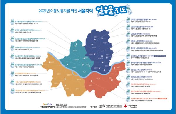 배포장소는 ▴이동노동자쉼터 5곳(합정, 북창, 서초, 녹번, 도봉)▴시립·구립 노동자종합지원센터 14곳 ▴사설 노동자지원기관 2곳 등 총 21곳이다.