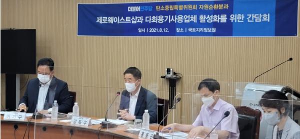 한편 이번 현장 방문과 간담회를 주관한 강득구 의원은 지난 4월 지자체가 제로웨이스트샵을 의무 설치하도록 하고 다회용기제공 기업체까지 세제 혜택을 주어 일회용 플라스틱 사용을 줄이는 ⌜자원의 절약과 재활용촉진에 관한 법률⌟개정안을 대표발의한 바 있다.