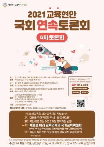 마지막으로 이번 토론회는 「2021 교육현안 국회 연속토론회」의 일환으로 이루어지는 4차 토론회이다. 지난 4월에는 ‘미래교육을 위한 교육재정 확보 방안’에 대한 1차 토론회를, 5월에는 ‘미래를 위한 학급당 학생수와 교원정원’에 대한 2차 토론회를, 6월에는 ‘국민이 만드는 2022 개정 교육과정 방향’에 대한 3차 토론회가 개최되었으며, 이번 4차 토론회에서는 국가교육위원회의 성공적 안착을 위한 실천방안을 모색하기 위해 지혜를 모으는 자리가 마련되었다.