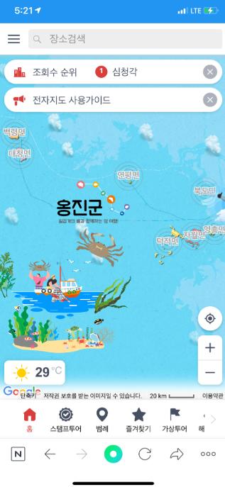 군 관계자는 “별도 어플을 다운받을 필요 없이 네이버 등 포털사이트에 ‘옹진 전자지도’를 검색하면 바로 접속할 수 있으며, 다양한 관광정보 제공을 위해 전자지도를 지속적으로 업데이트하여 가장 최신의 관광정보를 관광객들에게 제공하도록 노력하겠다.”고 밝혔다.