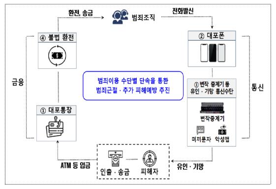 4대 범행수단은 하나만 단속되어도 전화금융사기 범죄 자체가 곤란해지는 특징을 가지고 있어, 이번 집중단속을 통해 추가 범죄피해를 예방함과 동시에 범죄조직 상선 추적 단서도 확보 가능할 것으로 기대된다.