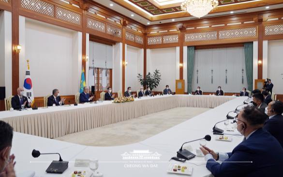 오늘 간담회에는 문재인 대통령과 문승욱 산업통상자원부 장관, 이호승 청와대 정책실장, 그리고 카자흐스탄 측에서 희망한 우리 10개 기업 기업인 등 13명이 참석했다. 카자흐스탄에서는 토카예프 대통령, 정부 관료, 바크트 듀센바예프 주한카자흐스탄 대사, 기업인 등 11명이 참석했다.