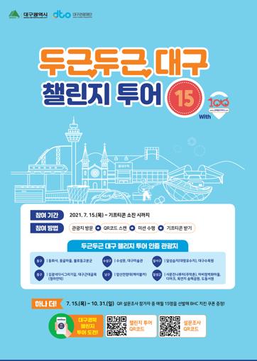 ‘두근두근 챌린지 투어’는 모바일을 이용한 비대면 미션투어 프로그램으로, 대구·경북이 공동으로 추진하고 있으며 대구관광지 15곳과 경북관광지 100곳을 방문하고 여행자 개인 휴대폰으로 관광지에 설치된 QR코드 스캔만으로도 손쉽게 챌린지에 참여할 수 있다.