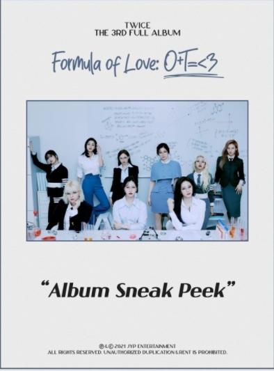 [한국연예축제일보, 장승엽기자] 오는 12일 트와이스의 새 정규 앨범 '포뮬러 오브 러브: O+T=<3(Formula of Love)'가 발매된다. 지난해 10월 정규 2집 '아이즈 와이드 오픈(Eyes wide open)' 이후 약 1년 반 만에 발매하는 신보다.