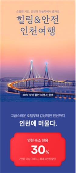 350여 개의 인천지역 숙박시설을 최대 5만원 할인된 금액으로 이용할 수 있는 ➀인천 숙박상품 기획전을 비롯해 ➁인천시티투어버스와 ➂투어패스 할인 이벤트를 진행한다.