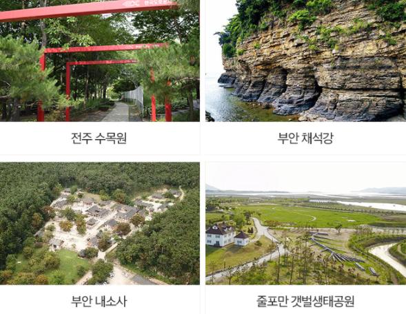 참여자들은 전북의 명산인 진안 마이산, 전주 수목원, 전주한옥마을, 부안 변산반도 국립공원, 내소사 등을 찾게 되며 줄포만 갯벌생태공원에서는 수상레저체험도 즐길 수 있다.