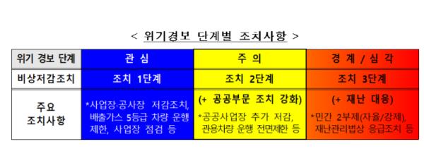 이와 함께, 홍정기 환경부 차관은 이날 오전부터 배출가스 5등급 차량 운행제한을 점검하는 세종특별자치시 상황실(세종시청 내 소재)과 도로 청소 현장(세종시 한누리대로)을 점검한다.