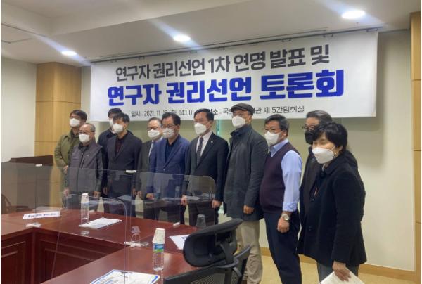 민교협 박치현 연구원은 연구자의 삶을 가시화하기 위해선 정확한 실태조사와 함께 국가 책임을 강화해야 한다고 주장했으며, 비정규교수노조 김어진 조합원은 가장 열악한 처지인 여성 연구자로서 어려운 삶을 말하며 연구환경 개선을 강조했다.