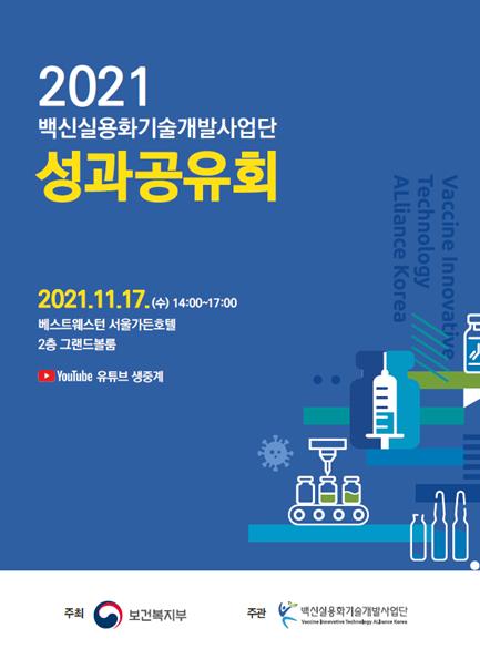 [한국연예축제일보, 한진우기자] 보건복지부와 백신실용화기술개발사업단은 11월 17일 오후 2시에 베스트웨스턴 서울가든호텔에서 「2021 백신실용화기술개발사업단 성과공유회」를 개최한다고 밝혔다.