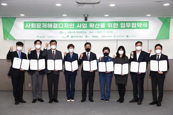 서울시는 용산 드래곤즈 소속 8개 기업·기관과 18일(목) 「사회문제해결디자인 사업 확산을 위한 업무협약」을 체결하고, ‘호야토토’를 활용한 동화책 공동 제작·기부 행사를 열었다.
