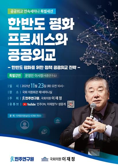 민주연구원(노웅래 원장)과 국회 외교통일위원회 간사를 맡고 있는 이재정 의원(경기 안양동안을)은 공동으로 주최한 공공외교 연속세미나의 특별세션(강연: 문정인 이사장)을 23일 개최한다고 밝혔다.