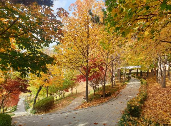 [한국연예축제일보, 이청기자] 창원시는 2020년 6월 개장한 도심 속 공립수목원인 창원수목원이 가을 단풍과 낙엽으로 막바지 가을 정취를 느끼려는 시민들의 발길이 끊이지 않고 있다고 23일 밝혔다. 울긋불근 물든 아름드리 나무 사이로 노랗게 쌓인 낙엽들을 밟으며 시민들은 지속되는 코로나 사태에 지친 심신을 위로 받고 있다.