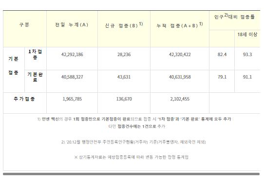 추가접종은 136,670명으로 총 2,102,455명이 추가접종을 받았다.