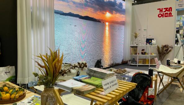 시는 천혜의 자연환경을 내세워 비대면 관광 시대에 걸맞은 ‘걷기여행과 프라이빗 여행’을 주요 홍보 테마로 기획했다. 대형LED 화면을 창문으로 연출하고 거제의 아름다운 풍경을 송출해 현장에서 감성 숙소에 여행 온 듯한 느낌을 가지도록 해 관람객들의 큰 호평을 받았다.