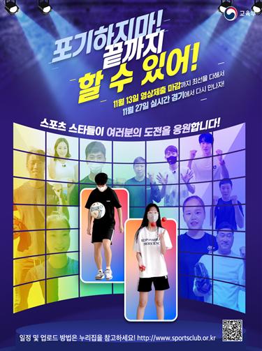 [한국연예축제일보, 유혜경기자] 교육부는 ‘2021년 비대면 전국 학교스포츠클럽 축전 실시간 경기’를 11월 27일 10시부터 개최한다.