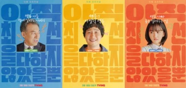 [한국연예축제일보, 장승엽기자] 티빙 오리지널 ‘아직 최선을 다하지 않았을 뿐’이 박해준, 김갑수, 박정연, 달라도 서로 너무 다른 삼대(三代)의 캐릭터 포스터를 전격 공개했다.