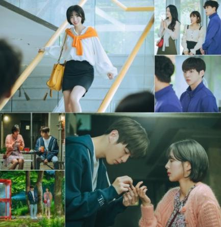 그런 가운데 공개된 사진 속 평소와 다른 고은강의 화사한 발걸음이 시선을 사로잡는다. 마침내 대학생활의 로망 ‘소개팅’에 참여하게 된 고은강. 우주영(민도희 분), 신아리(천영민 분)와 함께 한껏 힘을 준 모습이다.
