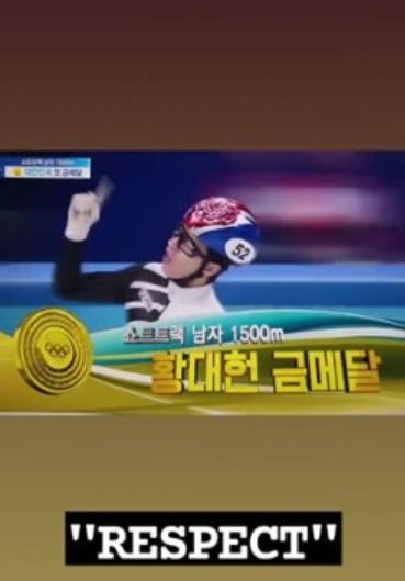 RM은 지난 9일 자신의 소셜 미디어에 황대헌이 '2022 베이징 동계올림픽' 쇼트트랙 남자 1500m 경기 결승에서 가장 먼저 결승선을 통과하는 영상을 올린 뒤 "리스펙트!(RESPECT!)"라는 글을 올렸다.
