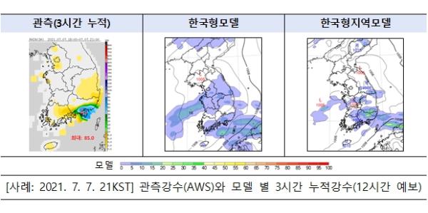 한국형지역수치예보모델(RDAPS-KIM)은 한반도를 포함한 동아시아 지역에 대해 3km 격자 간격으로, 작은 규모의 위험기상 예측이 가능한 상세 기상정보를 생산할 수 있게 되었다.