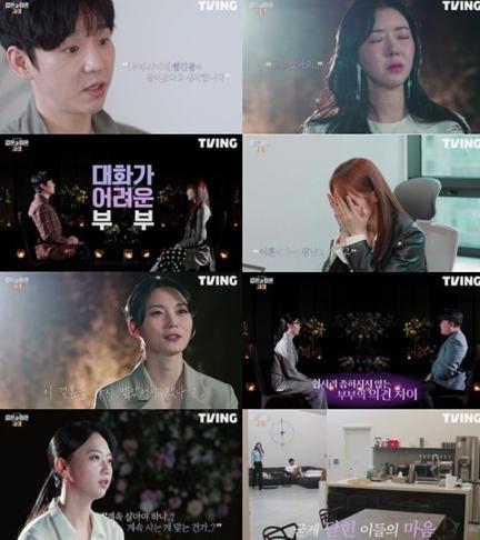 먼저 ‘김지혜-최성욱’ 부부의 영상에는 기댈 곳이 없어 힘들어 하는 아내와 돈 앞에 작아지는 남편의 모습으로 갈등을 겪는 두 사람의 모습이 담겨 있다. “‘머리로는 이 결혼 생활은 아니다.’해요. 그런데 이제 그 사실을 제가 외면하는 거죠.”라며 속 마음을 드러낸 이들에게 어떤 사연이 있는지 궁금증을 자아낸다.