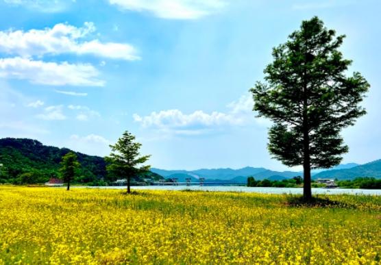 [한국연예축제일보, 이청기자] 의성군 단밀면 낙단보 수변공원에 유채꽃이 만발하여 노오란 물결의 장관을 연출하고 있다.