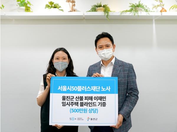 서울시50플러스재단 김난일 노조위원장은 “이번 기부가 산불 피해로 삶의 터전을 잃은 이재민들의 일상 회복에 도움이 되길 바란다”며 “재단 임직원들이 함께 참여하여 지역사회에 도움을 줄 수 있는 다양한 사회공헌활동을 이어 가겠다”고 이야기했다.