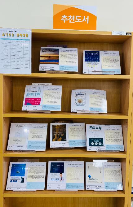 선정도서로는 ‘돈의 속성’,‘존리의 금융문맹 탈출’,‘부의 대이동’등이 선정돼 2층 종합자료실에 전시 중이다.