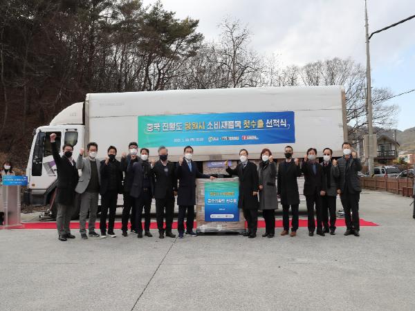 [한국연예축제일보, 유혜경기자] 창원시는 28일 오후 3시 30분 내서읍 가고파힐링푸드 제1공장에서 관내 수출기업의 해외시장 다변화를 위해 전국 자치단체 최초로 소비재 품목의 중국 내 상설전시판매장과 온라인 입점을 위한 초도물품 수출 선적식을 가졌다고 밝혔다.