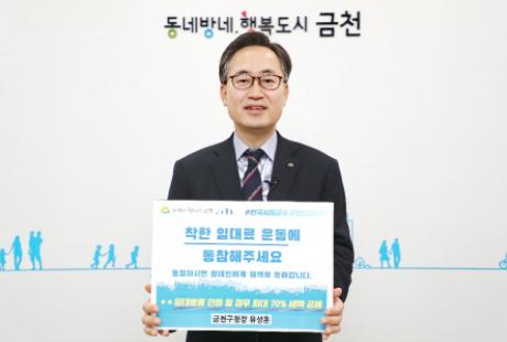 [한국연예축제일보, 유혜경기자] 유성훈 금천구청장이 착한 임대료 운동을 홍보하기 위해 지난 26일 ‘착지 챌린지’에 동참했다.