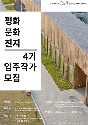 [한국연예축제일보, 유혜경기자] 도봉구는 2월 1일부터 7일까지 2021년도 평화문화진지 제4기 입주작가를 공개 모집한다.