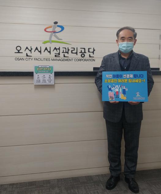 [한국연예축제일보, 유혜경기자] 오산시시설관리공단은 지난 28일 코로나19 장기화에 따른 사회적 거리두기로 어려움을 겪고 있는 지역 소상공인 및 자영업자들을 위해 ‘착한 선결제·선구매 캠페인’에 동참했다고 밝혔다.