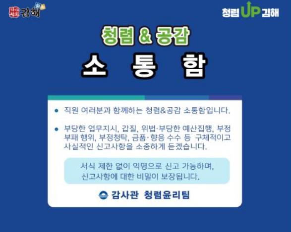 지난 ‘2020년 국민권익위원회 공공기관 청렴도’측정 결과 종합청렴도 2등급 으로 도내 18개 시?군 중 1위를 차지하였으나, 공직비리 사전예방 및 2021년 청렴도 1등급으로 발돋움하기 위해 직무수행 현장에서 직접 겪은 위법 부당사항을 귀담아 듣고 개선하여 내실 있는 청렴도 향상을 도모하고자 추진한 정책이라고 김해시 관계자는 밝혔다.