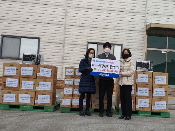 신창제지공업(주)(대표 김원일, 실옥동)가 28일 아산시(시장 오세현)에 지역 내 취약계층 지원을 위한 500만원 상당 후원물품을 전달했다.