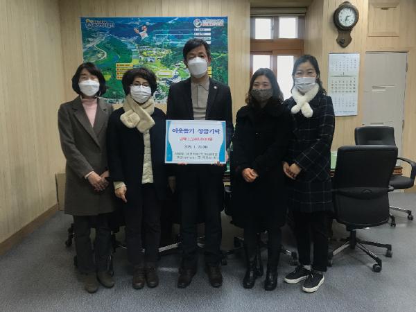 교직원 및 학부모 일동은 다년간 뜻을 함께 모아 연말연시 어려운 이웃을 위해 매년 기부를 실천해 오고 있으며, 2020년 3월경 코로나19 초기 발생시기 성민보육원(원장 신정찬)과 어린이집에 근무하는 직원 50명의 급여 20만원씩 기부를 통해 함양군에 1,000만원을 기탁하는 등 나눔실천에 앞장서 왔다.