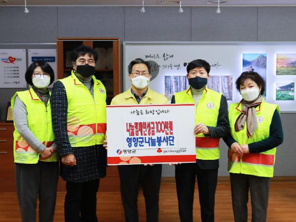 영양군사랑의열매나눔봉사단(단장 주익환)은 1월 29일 영양군청을 방문하여 100만원의 성금을 전달하며‘희망2021 나눔캠페인’마감에 동참하였다.