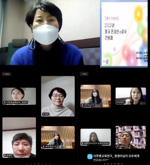 [한국연예축제일보, 김재만기자] 고양시 여성회관은, 시민 역량을 강화하는 온라인 사회교육에 뜻을 모은 온라인 강사들과 함께하는 '2021년 온라인e강사 화상 간담회’를 지난 26일과 28일 두 차례에 걸쳐 온라인 화상회의로 실시했다.