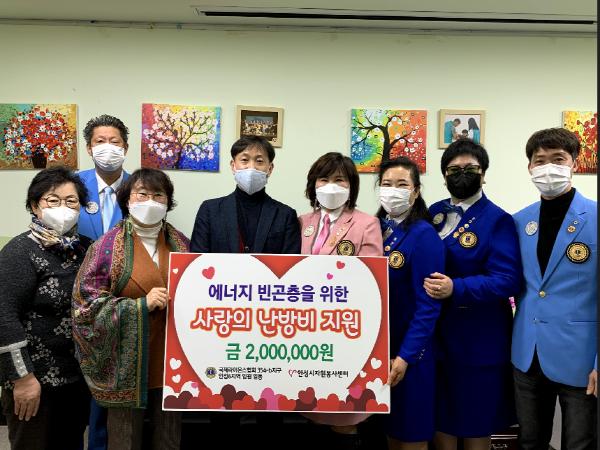 [한국연예축제일보, 유혜경기자] 지난 1월 28일 안성시자원봉사센터의 추천으로 안성라이온스클럽에서 안성시동부무한돌봄네트워크팀에 2,000,000원을 기탁 하여 안성 관내의 취약계층 에게 겨울을 따듯하게 보낼수 있도록 난방비를 지원하였다.