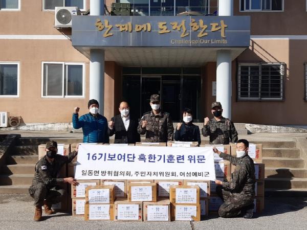 일동면방위협의회 김남현 의장은 “주민생활 안정을 위해 혹한기 훈련으로 고생하는 군장병에게 따뜻한 마음이 전달되었기 바라며, 앞으로도 민관군이 어려운 시기에 협업을 통해 함께 상생해 나갈 수 있도록 노력하겠다.”고 말했다.