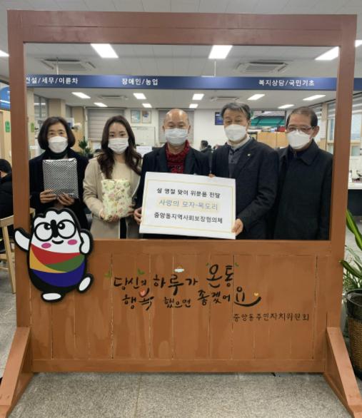 [한국연예축제일보, 유혜경기자] 중앙동 지역사회보장협의체는 다가오는 설 명절을 맞아 1월 28일 사랑의 모자·목도리 나눔 행사를 열고 정성껏 마련한 모자와 목도리를 관내 취약계층 40가구에 전달했다.