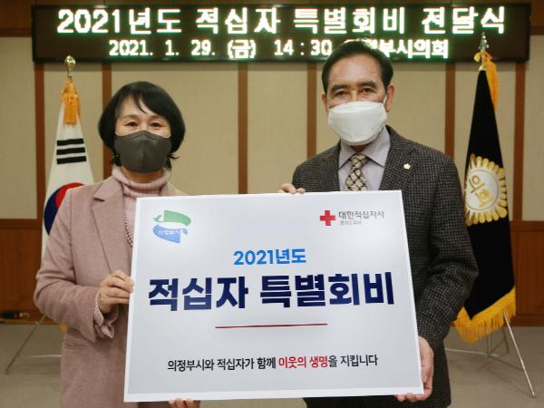 [한국연예축제일보, 변현식기자] 의정부시의회는 지난 29일 대한적십자사 경기도지사에게 2021년도 적십자 특별회비를 전달했다.