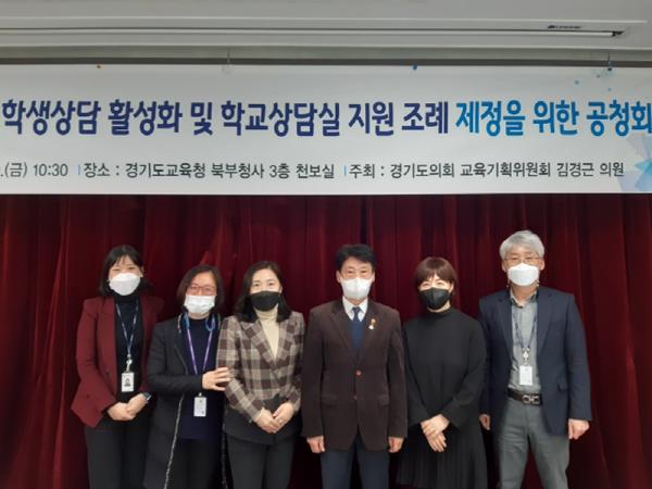 [한국연예축제일보, 변현식기자] 경기도의회 교육기획위원회 소속 김경근 의원(더불어민주당, 남양주6)은 1월 29일(금) 의정부 경기도교육청 북부청사에서 '경기도교육청 학생상담 활성화 및 학교상담실 지원 조례' 제정을 앞두고 현장의 목소리를 청취하기 위한 공청회를 개최하였다. 이 날 공청회는 코로나 거리두기 관계로 무관중으로 진행되었으며 도교육청 교육과정국 학생생활인권과 담당 공무원과 상담교사 등이 참여하는 전문가 간담회 방식으로 진행되었다.